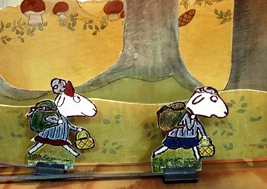Lammen Bu och Bä bestämmer sig att göra en liten utflykt till skogen. Det är väldigt kul, men samtidigt lite skrämmande tycker Bu. Tänk om det finns myror där… Det gör det inte, försäkrar Bä och sen beger de sig iväg.