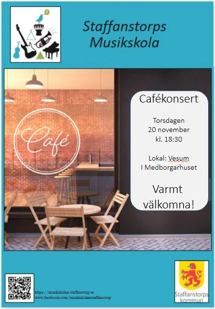 Elever och lärare bjuder till cafékonsert och framför olika musikstycken i olika musikstilar. Föräldraföreningen SMFF säljer fika. Torsdagen 20 november, klockan 18:30 i Vesumsalen, Medborgarhuset (Blekingevägen 1).