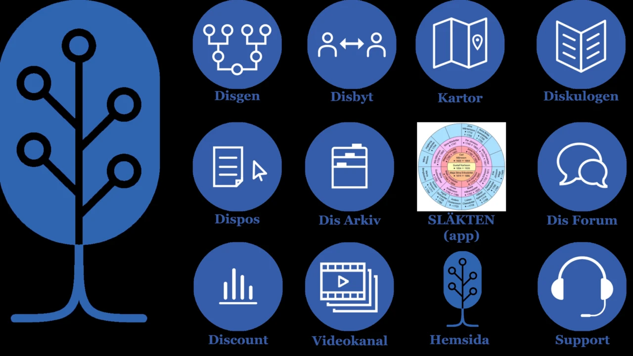Disgen är nog det deras mest kända program som likt MinSläkt sparar ditt släktträd på din dator men med många fler avancerade funktioner. Appen Släkten visar din forskning på mobiltelefonen. Genom Disbyt kan man byta uppgifter med andra släktforskare. De ger också ut ett par intressanta medlemstidningar. Hör Magnus berätta om detta och mycket mer.