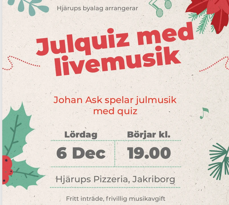 Johan Ask spelar julmusik med quiz. Frivillig musikavgift