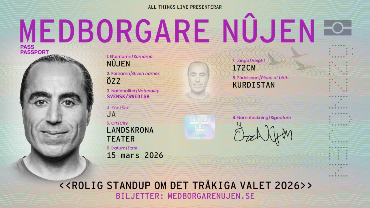 I standupföreställningen “Medborgare Nûjen” tar Özz Nûjen sig an frågan vad det egentligen betyder att vara medborgare i dagens Sverige.