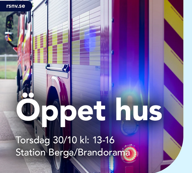 Efter några års uppehåll slår vi återigen upp portarna och håller öppet hus. Kom och titta på våra bilar och vår utrustning, prova släcka brand i kläder och ställ frågor om brandskydd i hemmet. Träffa personal från flertalet av våra avdelningar samt RSNV:s ungdomsbrandkår, polis och ambulans.
