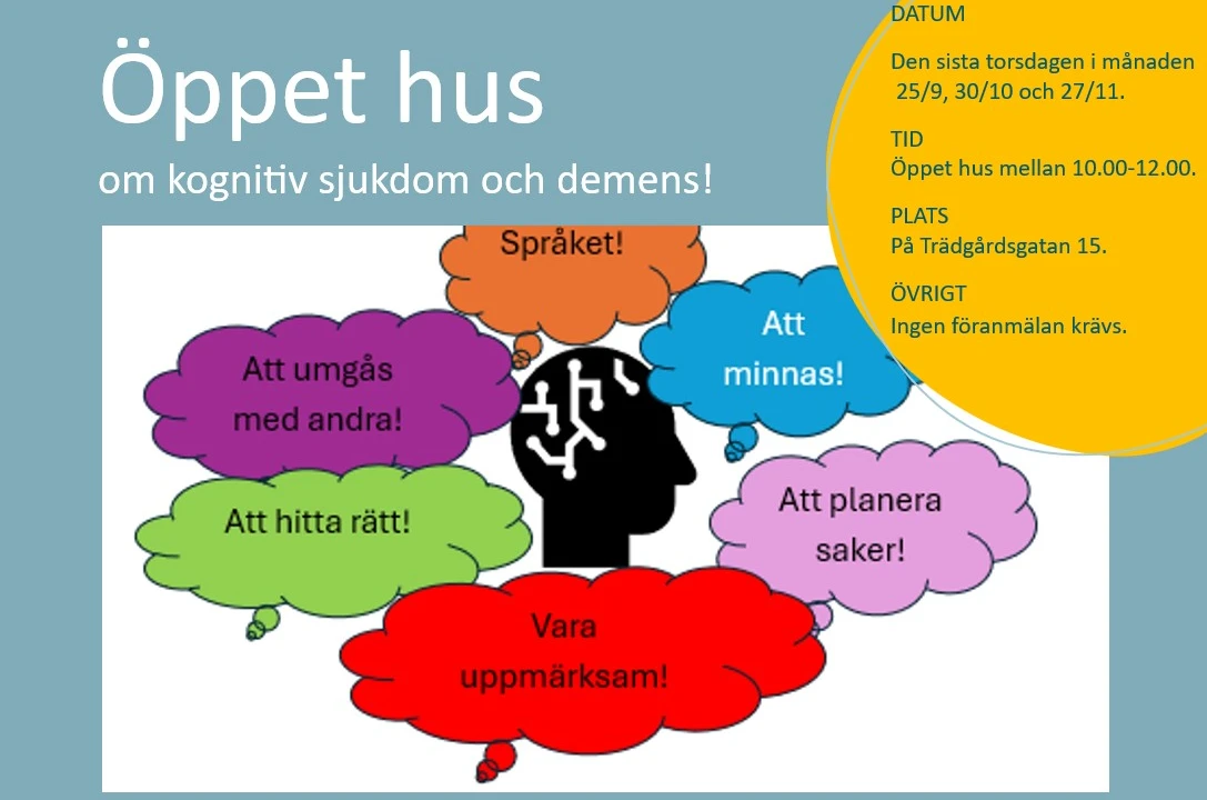 Har du frågor eller tankar kring demenssjukdomar/kognitiva sjukdomar? Finns någon i din närhet som du misstänker har en demenssjukdom eller är du rädd för att du själv har det? Kanske du är orolig för att drabbas i framtiden? Eller bara nyfiken och vill veta mer!