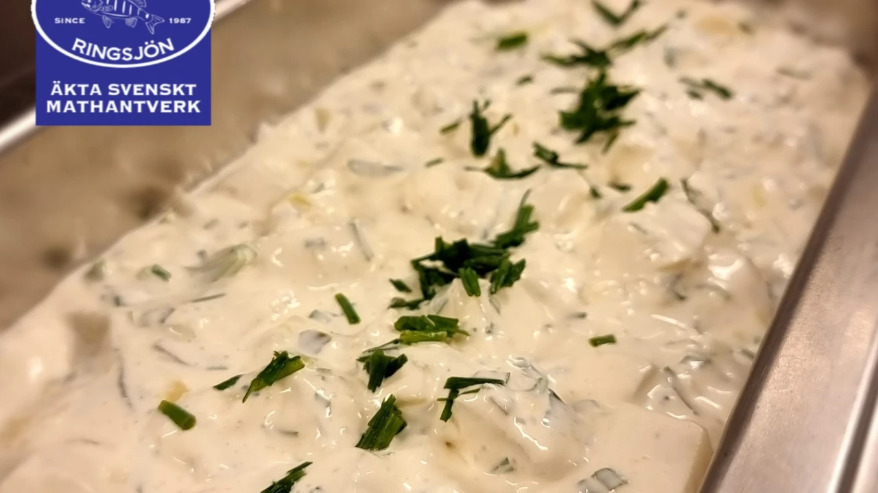 Håkan från BJÖRKs RINGSJÖN dukar upp en sillbuffé med både klassiska och nya smaker på Hantverksgården i Löberöd hos Hembygdsföreningen.